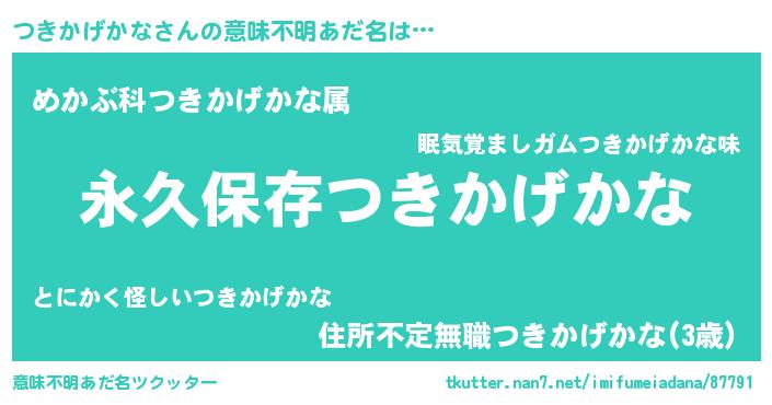 | ヘコむあだ名 | 『つきかげかな(笑)』『つき太郎』 |