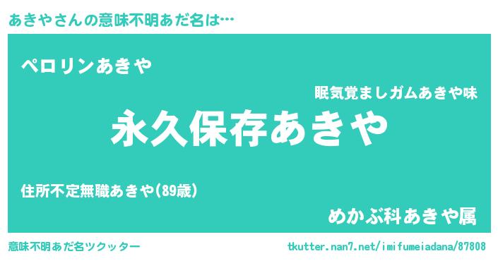 | 男性向けラノベタイトル風あだ名 | 『あきやという概念が存在しない退屈な世界 』 |