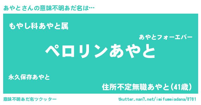 | 胡散臭い通販商品みたいなあだ名 | 『モテモテ間違いなし霊験あらたかなお札…その名も「あやと」』 |