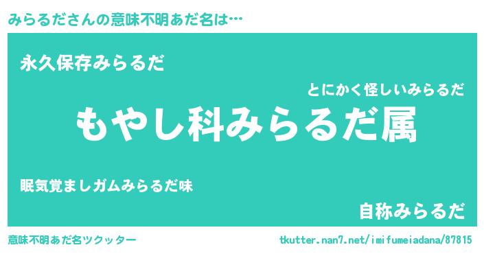 | 男性向けラノベタイトル風あだ名 | 『転生したらみらるだだった件』 |