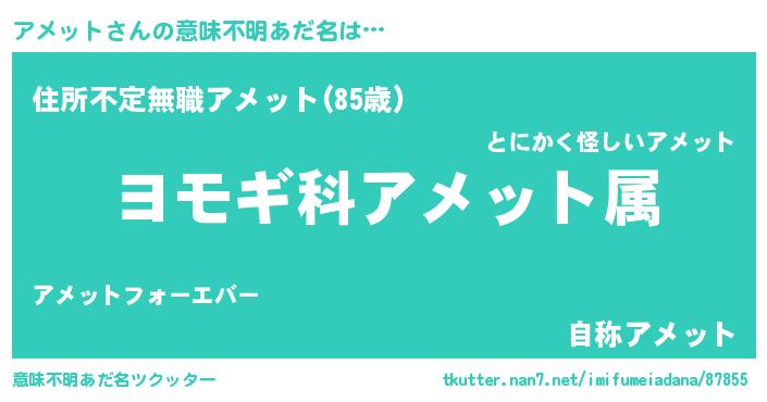 | ヒーロー風カッコイイあだ名 | 『仮面アメダー』『究極戦士アメット』 |