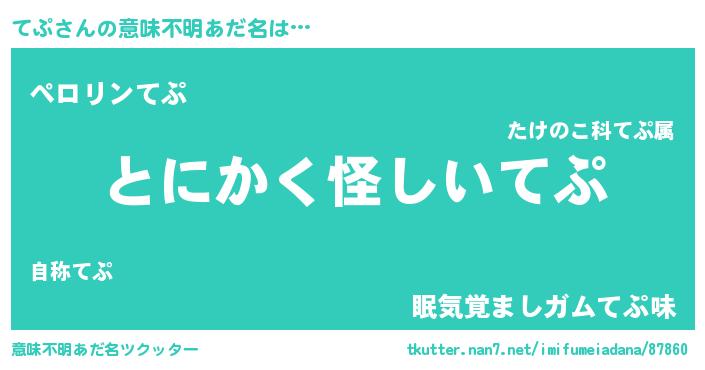 | 胡散臭い通販商品みたいなあだ名 | 『信頼と実績のサプリメント…その名も「てぷ」』 |