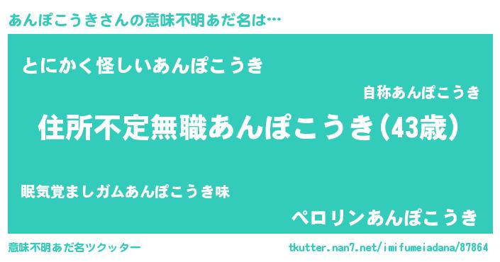| 伝説のあだ名 | 『孤高の僧侶あんぽこうき』 |