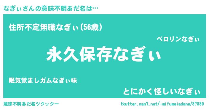 | 胡散臭い通販商品みたいなあだ名 | 『前代未聞の健康食品…その名も「なぎぃ」』 |