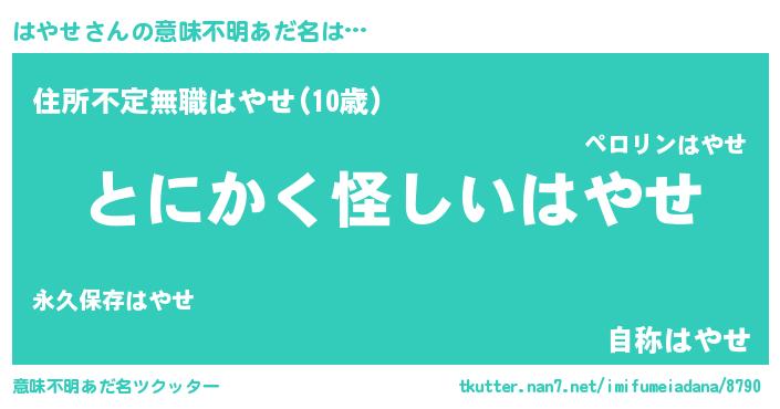 | ポケモン風あだ名 | 『ヒハヤセ』『ハーヤイ』『ゼニハヤ』 |