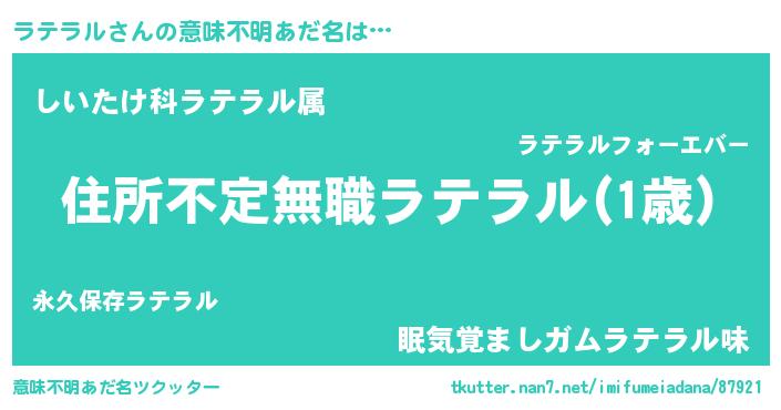 | ヒーロー風カッコイイあだ名 | 『仮面ラテダー』『愛の使者ラテラル』 |
