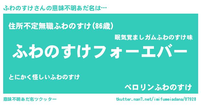 | 男性向けラノベタイトル風あだ名 | 『やはりふわのすけの青春ラブコメはまちがっている 』 |