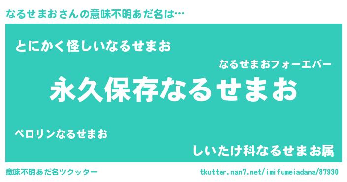 | 胡散臭い通販商品みたいなあだ名 | 『絶対に幸福をもたらす水素水…その名も「なるせまお」』 |