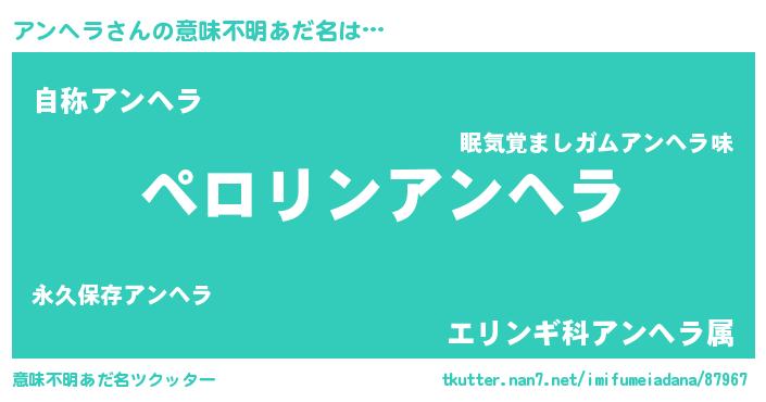 | ヘコむあだ名 | 『アンにゅー』『アンヘラ(笑)』 |