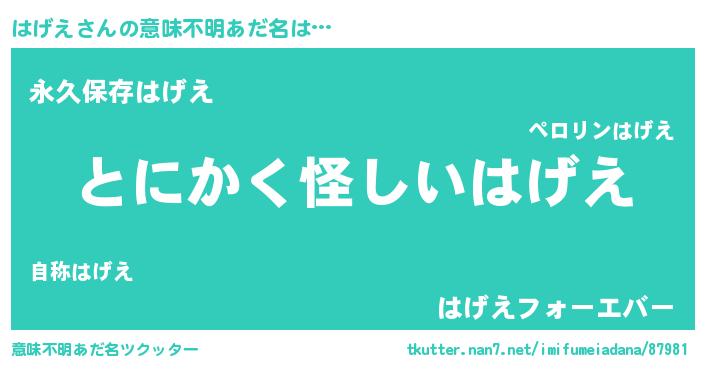 | 胡散臭い通販商品みたいなあだ名 | 『信頼と実績のサプリメント…その名も「はげえ」』 |