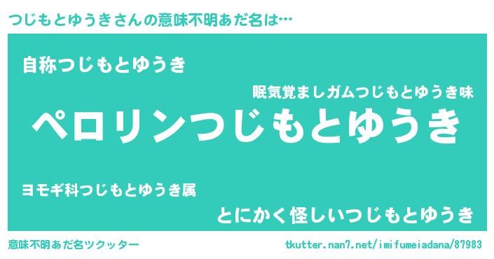 | ヒーロー風カッコイイあだ名 | 『スーパーツジモトユウキ』 |