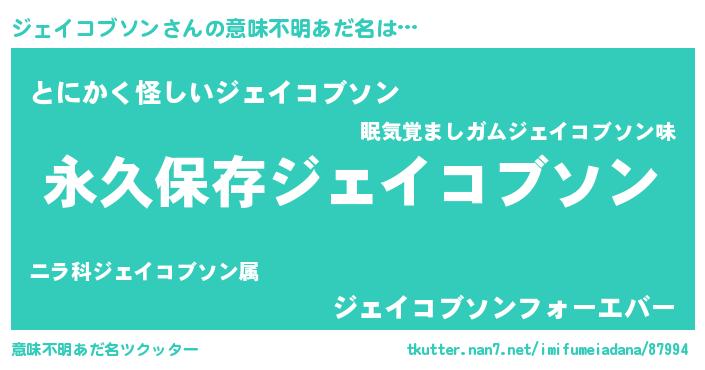 | 男性向けラノベタイトル風あだ名 | 『ジェイコブソンという概念が存在しない退屈な世界 』 |