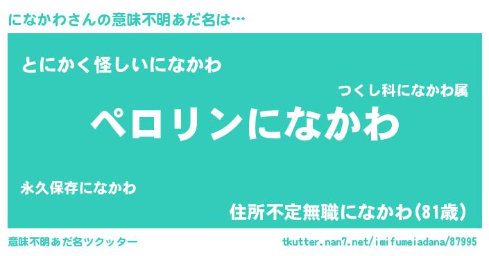 | 男性向けラノベタイトル風あだ名 | 『ニナカワアートオンライン』 |