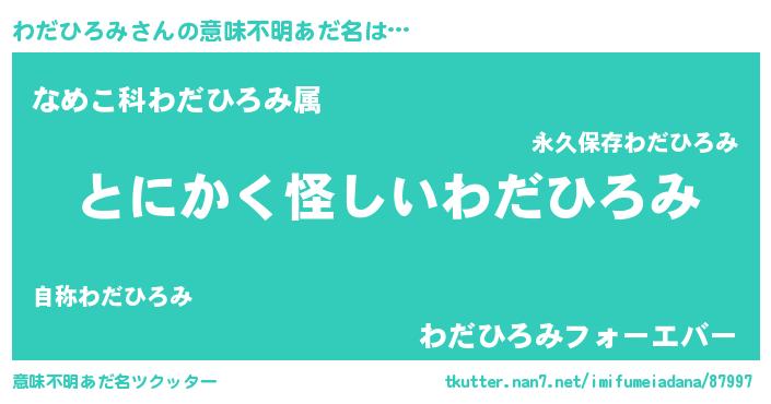 | 男性向けラノベタイトル風あだ名 | 『わだひろみの嫁は女の子じゃないと思った?』 |