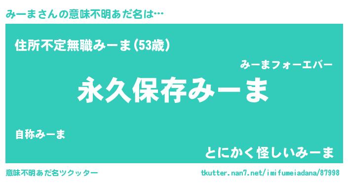 | ヘコむあだ名 | 『みーま(笑)』『みーっ子』 |