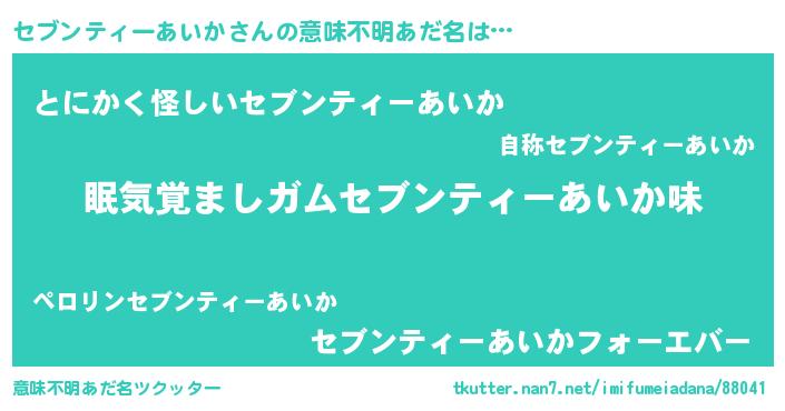 | ポケモン風あだ名 | 『セックウザ』『ヒセブンティーアイカ』 |