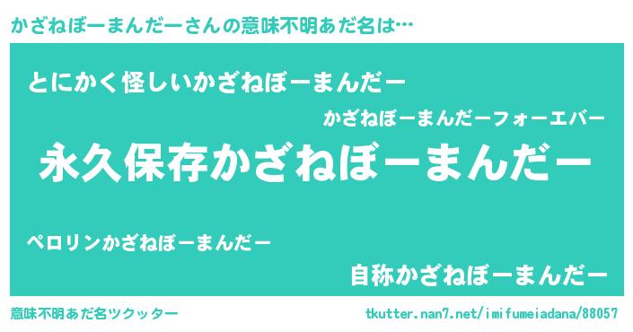 | 欧米人風あだ名 | 『アンジェラ・かざねぼーまんだー』 |