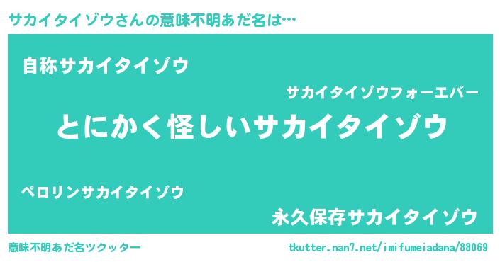 | 欧米人風あだ名 | 『ウサインサカイタイゾウ』 |