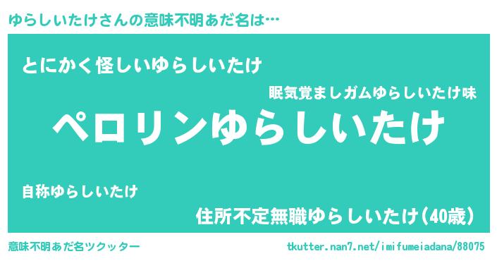 | 男性向けラノベタイトル風あだ名 | 『ユラシイタケアートオンライン』 |