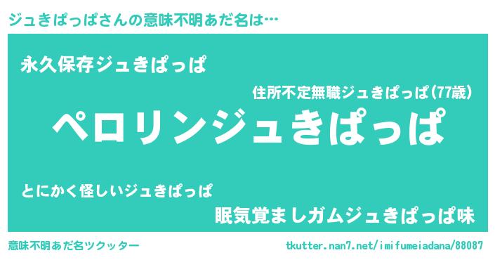 | 胡散臭い通販商品みたいなあだ名 | 『必ず成功する水晶球…その名も「ジュきぱっぱ」』 |