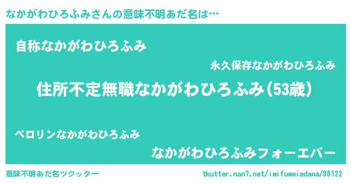 | 男性向けラノベタイトル風あだ名 | 『この素晴らしい世界になかがわひろふみを!』 |