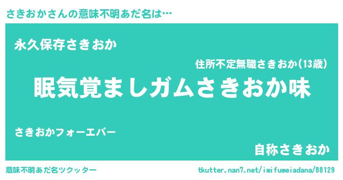 | ヒーロー風カッコイイあだ名 | 『正義の使者さきおか』『ネオサキオカ』 |
