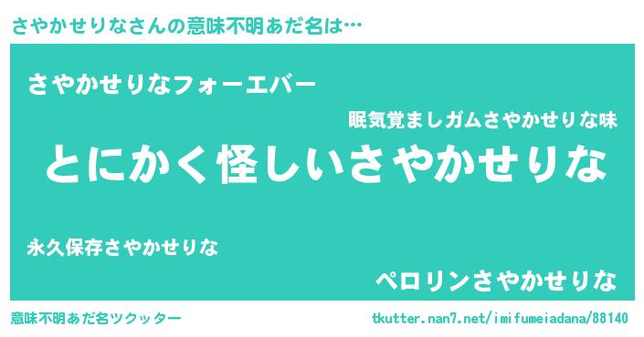 | ヒーロー風カッコイイあだ名 | 『幻影騎士サヤ』『スーパーサヤカセリナ』 |