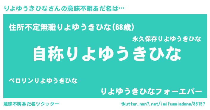 | 恥ずかしいあだ名 | 『リヨユウキヒナデラックス』『りよちん』 |