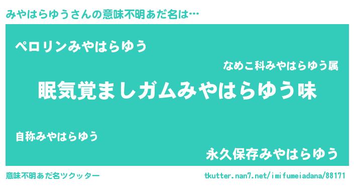 | ヘコむあだ名 | 『みやふぇ~』『みやはらゆう(笑)』 |