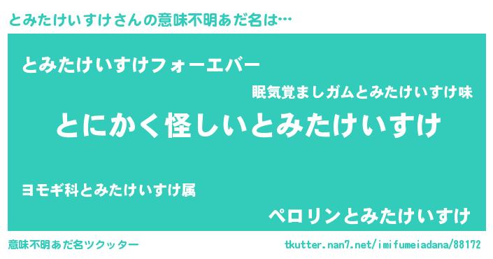 | 男性向けラノベタイトル風あだ名 | 『とみたけいすけの嫁は女の子じゃないと思った?』 |