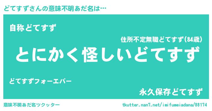 | 男性向けラノベタイトル風あだ名 | 『どてすずの嫁は女の子じゃないと思った?』 |