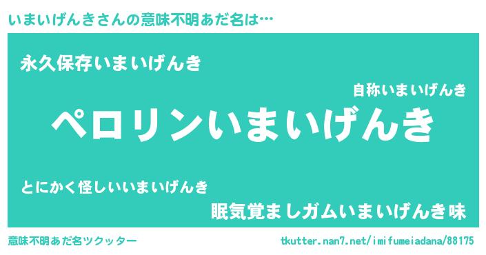 | 男性向けラノベタイトル風あだ名 | 『いまいげんきに滅ぼされるだけの簡単なお仕事です』 |