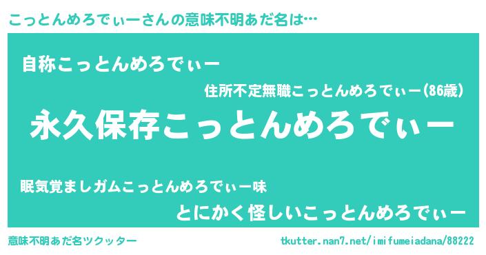| 伝説のあだ名 | 『古文書に記された暗殺者こっとんめろでぃー』 |