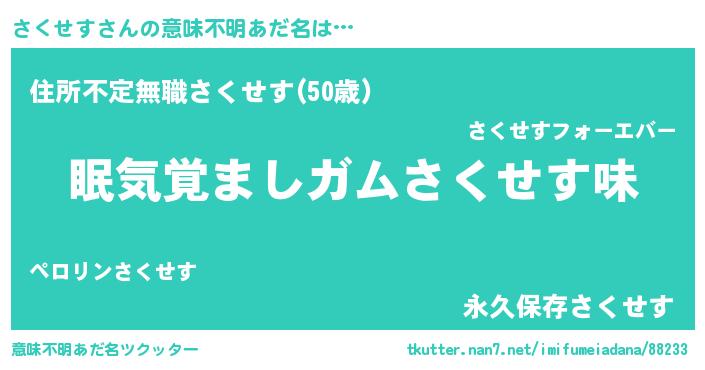 | ヘコむあだ名 | 『さくせす(遠い目)』『つくし』 |