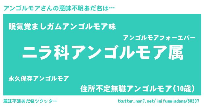 | 男性向けラノベタイトル風あだ名 | 『アンゴルモア~年齢イコール彼女いない歴の魔法使い~』 |