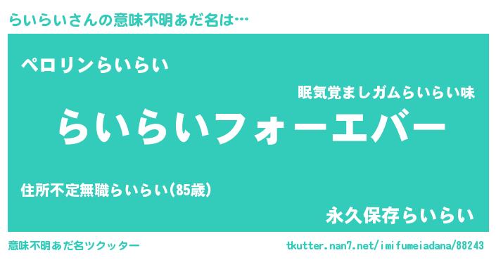 | ヒーロー風カッコイイあだ名 | 『ウルトラらいらいマン』『ネオライライ』 |