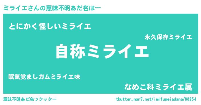 | ヘコむあだ名 | 『ミラお』『ミライエ(爆)』 |
