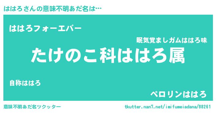 | ヘコむあだ名 | 『豆乳』『ははにー』『ははろ(笑)』 |