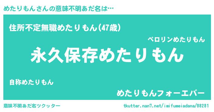 | 伝説のあだ名 | 『古より伝わる吟遊詩人めたりもん』 |