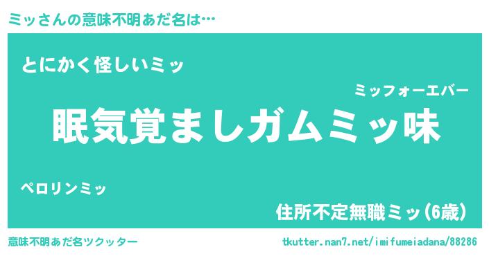 | 男性向けラノベタイトル風あだ名 | 『ミッに滅ぼされるだけの簡単なお仕事です』 |