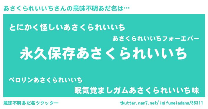 | 男性向けラノベタイトル風あだ名 | 『あさくられいいちという概念が存在しない退屈な世界 』 |