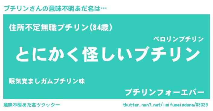 | 胡散臭い通販商品みたいなあだ名 | 『信頼と実績のサプリメント…その名も「ブチリン」』 |