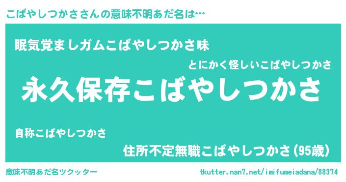 | ヘコむあだ名 | 『こばやしつかさ(笑)』『こばっ子』 |