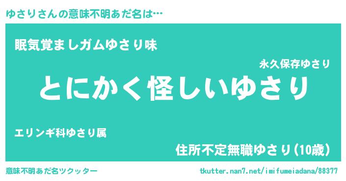 | ヒーロー風カッコイイあだ名 | 『銀牙騎士ユサ』『友情の使者ゆさり』 |