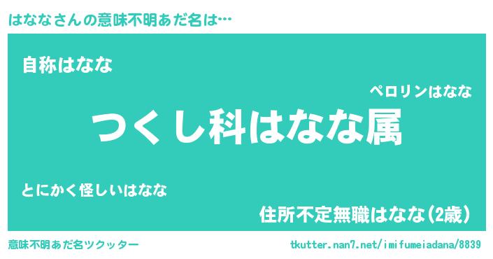 | 肩書あだ名 | 『はなな中佐』『はなな総統』 |