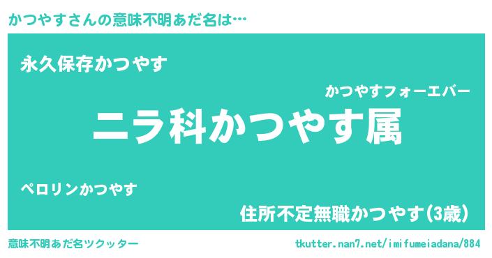 | ヒーロー風カッコイイあだ名 | 『ネオカツヤス』『仮面カツダー』 |