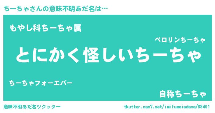 | ヒーロー風カッコイイあだ名 | 『黄金騎士チー』『サイバー戦士チーチャ』 |