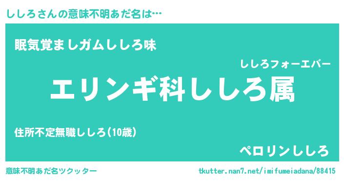 | 欧米人風あだ名 | 『トリンドルししろ』『ダニエルししろ』 |