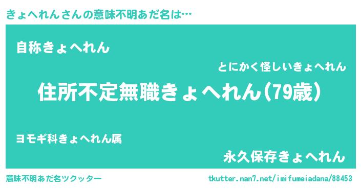 | ヘコむあだ名 | 『きょへれん(震え声)』『きょお』 |