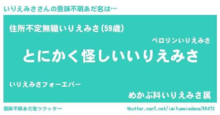 | 胡散臭い通販商品みたいなあだ名 | 『信頼と実績のサプリメント…その名も「いりえみさ」』 |